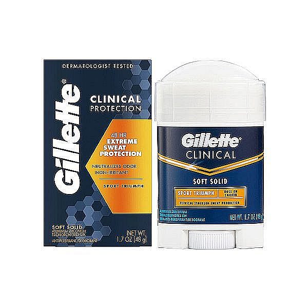 استیک ضد تعریق ژیلت کلینیکال لاین ضد تعریق بسیار پرطرفدار و پرفروش برند ژیلت می باشد. ژیلت کلینیکال با بهره گیری از فرمولاسیون طبی و غیر تهاجمی خود باعث ایجاد محافظت طولانی مدت و موثر در برابر تعریق می شود. بافت نرم و کرمی ضد تعریق ژیلت کلینیکال  با پخش آسان و جذب سریع عملکردی مساوی با میزان 6.25% آلومینیوم کلراید آر ایکس دارد. همچنین حاوی مواد نرم کننده پوست می باشد و از تحریکات پوستی جلوگیری می کند. این محصول برای همه افراد حتی افرادی که پئست های بسیار حساس داشته و از عملکرد ضد تعریق سایر محصولات راضی نیستند،انتخابی مناسب است.