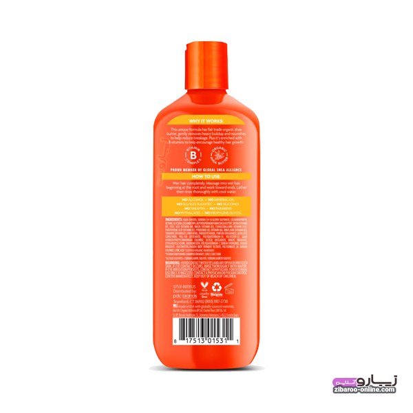 این محصول ساخت آمریکا و فرمولهشده بدون سولفات، پارابن و سیلیکون است تا بافت موهای شما را خشک و آسیبدیده حفظ و تقویت کند. ترکیب منحصربهفرد شیباتر خالص و پروویتامین B5 (پانتنول) به عمق مو نفوذ میکند، رطوبتش را نگه میدارد، از موخوره جلوگیری میکند و بافت فر و موج مو را احیا مینماید.