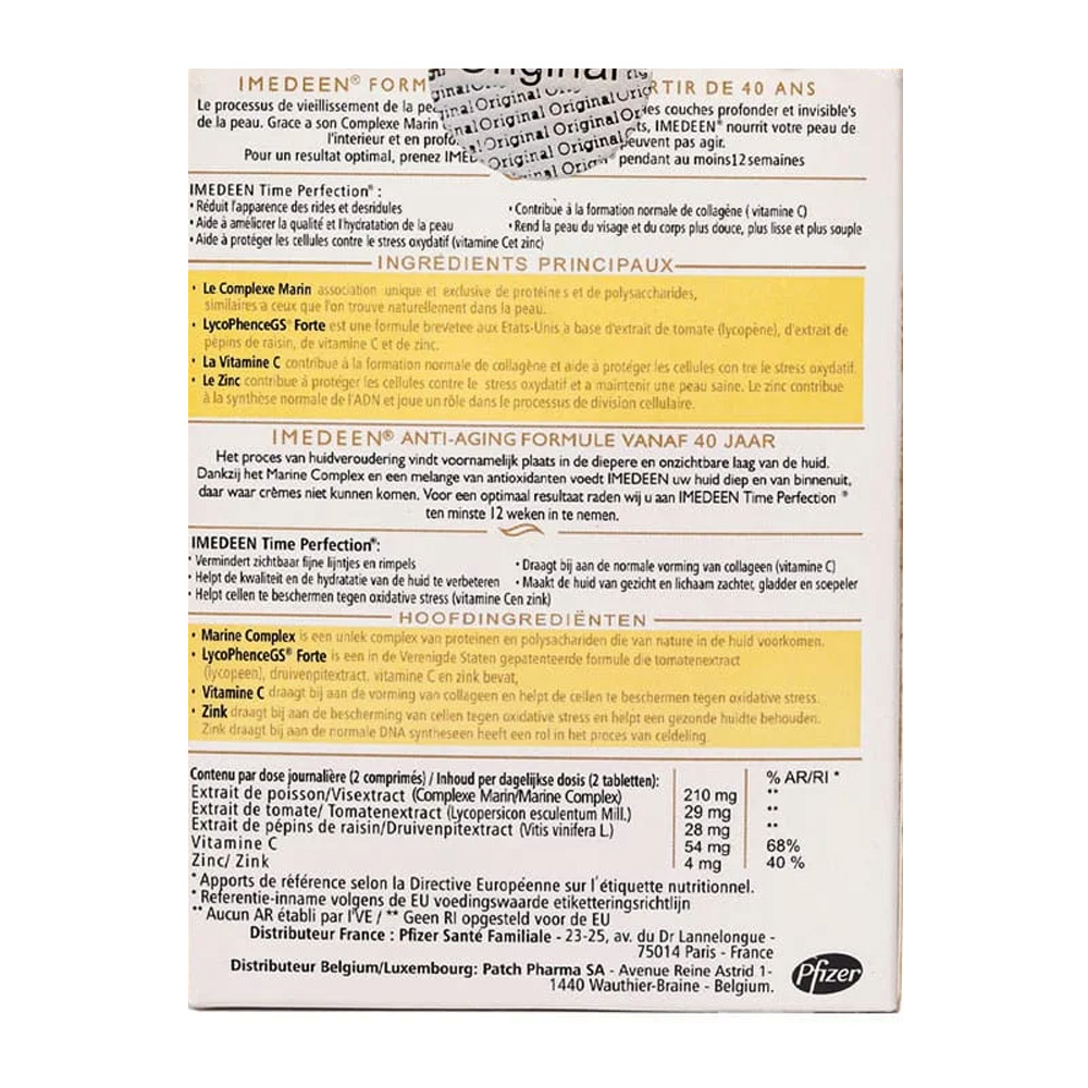 قرص ایمدین مدل تایم پرفکشن IMEDEEN TIME PERFECTION ضد پیری و بهبود سلامت پوست، یک مکمل پوستی پرطرفدار است که برای بهبود سلامت و ظاهر پوست طراحی شده است. این قرصها توسط برند معتبر ایمدین (IMEDEEN) ارائه میشوند و تمرکز آن روی افزایش شادابی، حفظ جوانی و کاهش علائم پیری پوست است.